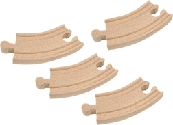 Šis 4 trumpų lenktų bėgių rinkinys – puikus bet kurios medinės traukinių trasos papildymas. Dėl 10 cm ilgio vienai detalei lengvai sukursite kompaktiškus lankus, jungtis ir naujas trasos formas. Bėgiai intuityviai susijungia ir tinka mažiesiems statytojams nuo 3 metų.