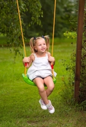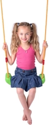 Dėl maksimalios 80 kg keliamoios galios sėdynė idealiai tinka vaikams nuo 6 metų ir atlaiko intensyvų kasdienį naudojimą. Metaliniai žiedai virvių galuose užtikrina greitą montavimą prie daugumos įprastų kablių ir konstrukcijų.