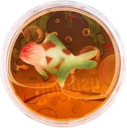 Šios permatomos gleivės turi mažą žuvytę, kuri atrodo lyg tikra. Laikomos kompaktiškoje dėžutėje, kuri lengvai telpa ant stalo, į spintelę ar lentyną.