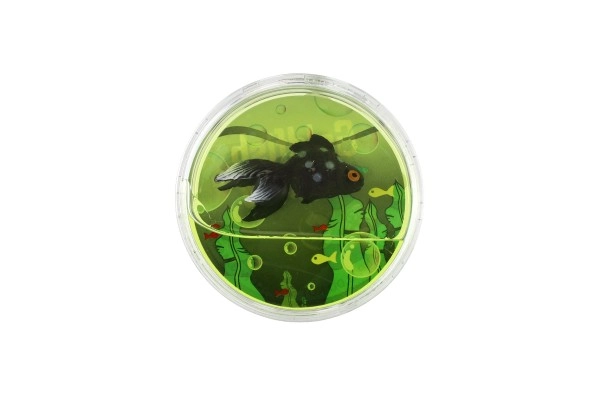Kompaktiškas permatomas indelis su realistiškai atrodančia žuvyte ir dekoratyviniais elementais vizualiniam malonumui.