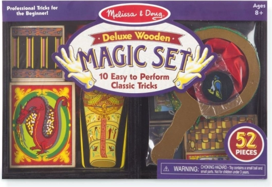 Šis rinkinys siūlo interaktyvų smagumą vaikams, kurie pamėgs burtų triukus su lengvai naudojamomis priemonėmis.