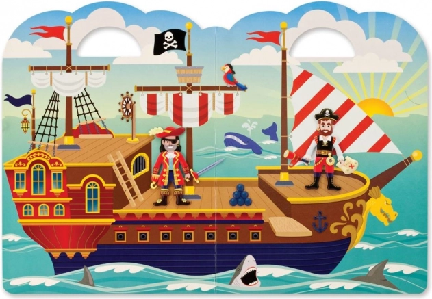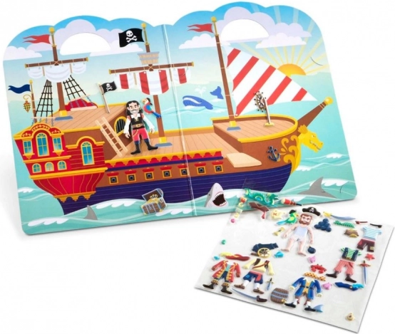 Leiskitės į nuotykius piratų laive su šiuo išskirtiniu žaidimų rinkiniu. Vaikai gali kurti savo jūrines istorijas, nes lipdukus galima klijuoti ir nuimti pakartotinai.