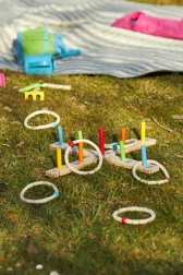 Masyvi medinė konstrukcija ir tvirti sizalio virvės žiedai užtikrina ilgaamžiškumą ir saugų žaidimą. Žaidimą lengva surinkti ir pasiimti su savimi atostogoms, į pikniką ar į sodą.