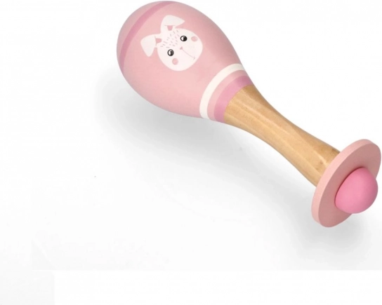 Šis lengvas medinis marakasas švelniai rožinės spalvos pradžiugins kiekvieną kūdikį. Švelnus garsas neblaško, bet natūraliai stimuliuoja regą, klausą ir akių–rankos koordinaciją. Ergonomiška forma palengvina suėmimą ir saugų mojavimą.