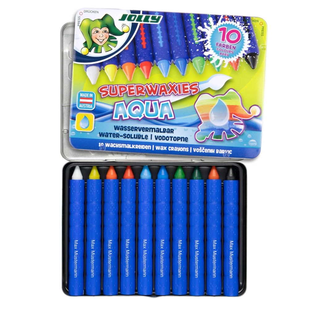 Nulaužimui atsparūs vaško pieštukai AQUA patogioje metalinėje dėžutėje mažiesiems kūrėjams nuo 3 metų. Jie siūlo ryškias ir sodrias spalvas, yra atsparūs lūžimui ir atitinka CE sertifikavimą. Dėl kompaktiškų matmenų 14 × 10 cm lengvai telpa į kuprinę ar penalą.