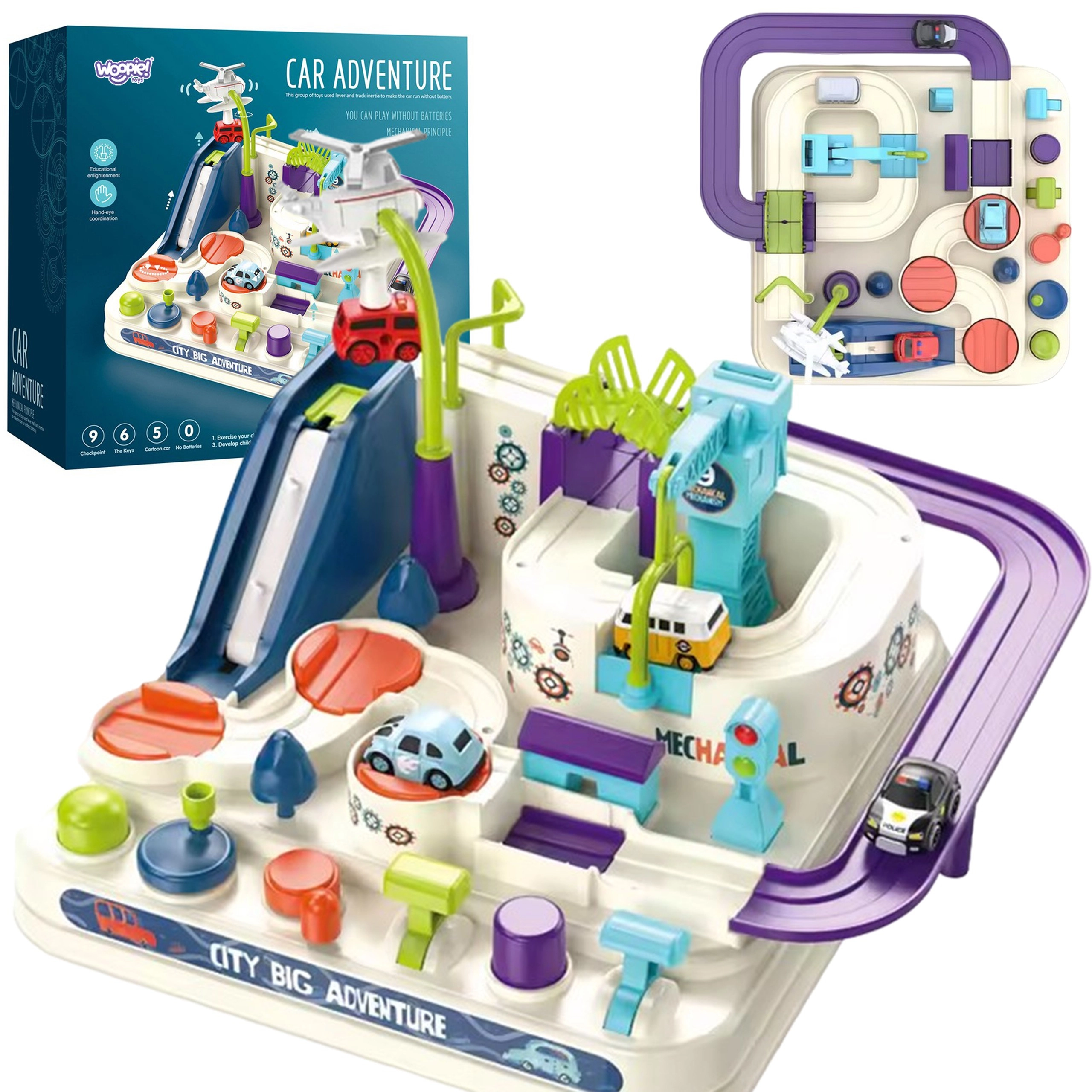 Valdymo mygtukai ir sukami ratukai suteikia vaikams kontrolę kėlimo platformoms, judančioms platformoms ar tuiltui. Žaidimas skatina planavimą ir sprendimų priėmimą – mažieji lenktynininkai turi apgalvoti, kaip geriausiai įveikti trasą ir įveikti iššūkius.