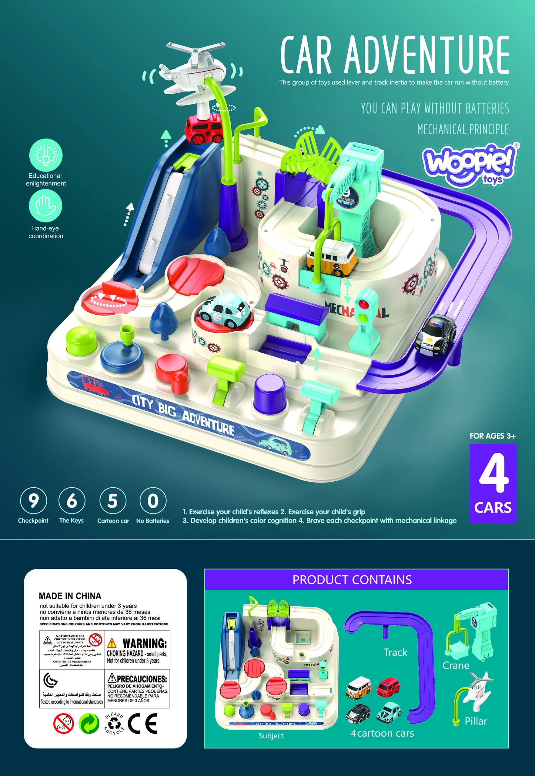 Atraskite nuotykių kupiną pasaulį su interaktyviu Woopie „Miesto transporto priemonės“ rinkiniu. Vaikai tampa vairuotojais, kurie įveikia tiltus, pavaras ir kitas kliūtis, o automobiliukai gali laisvai tyrinėti trasą. Dėl apgalvotos konstrukcijos ir magnetinių elementų kiekviena kelionė yra kitokia ir kupina adrenalino.