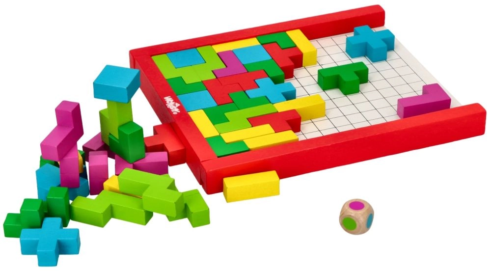 Atraskite medinės Tetris stiliaus dėlionės žavesį, sudarytą iš ryškių geometrinių detalių. Žaidimas sukurtas taip, kad lavintų vaikų nuo 3 metų erdvinę vaizduotę ir kūrybiškumą. Kiekviena detalė pagaminta iš kokybiškos medienos ir sukurta taip, kad puikiai įsilietų į tinklelį.