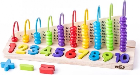 Šis skaičiuotuvas padeda vaikams lavinti sudetį ir atimtį ir kartu veikia kaip edukacinė dėlionė patiems mažiausiems, tik pradedantiems mokytis skaičių nuo 1 iki 10.