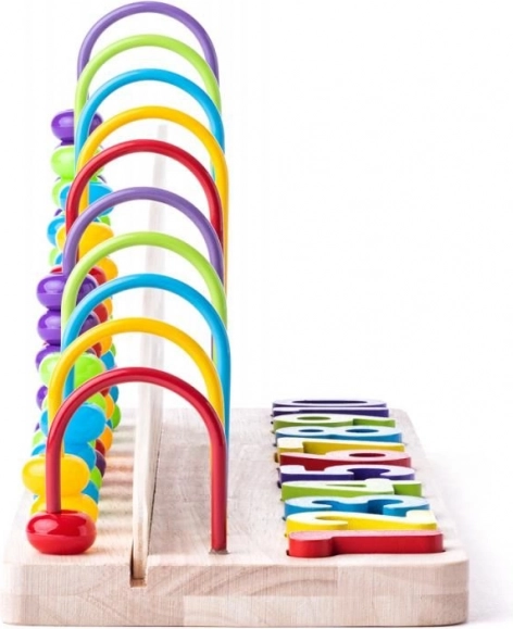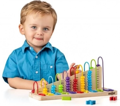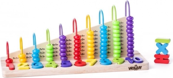 Skaičiuotuvas susideda iš medinio pagrindo su metaliniais bėgeliais, ant kurių yra spalvoti plastikiniai karoliukai. Lentelė viduryje vienoje pusėje pateikia sudėties, o kitoje – atimties užduotis. Rinkinyje taip pat yra spalvotų išimamų blokelių su skaičiais ir simboliais +, - ir =.