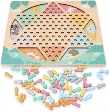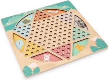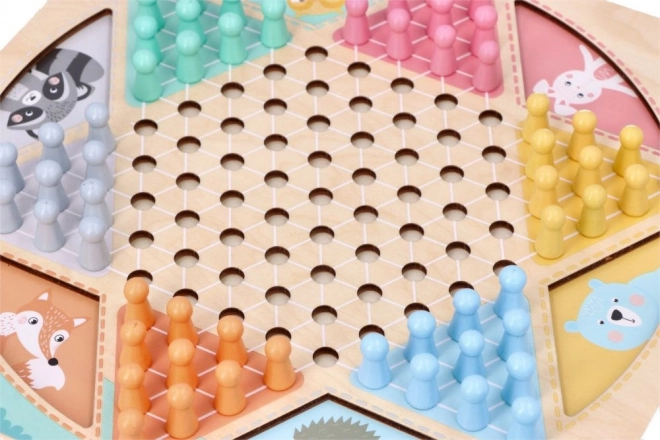 Dvipusė medinė lenta, maždaug 30 × 30 cm dydžio, puošta švelniais gyvūnėlių motyvais ir papildyta spalvingomis, lengvai suimti figūrėlėmis. Dėl tvirto atlikimo ir aiškios grafikos ji idealiai tinka bendram vaikų ir suaugusiųjų žaidimui.