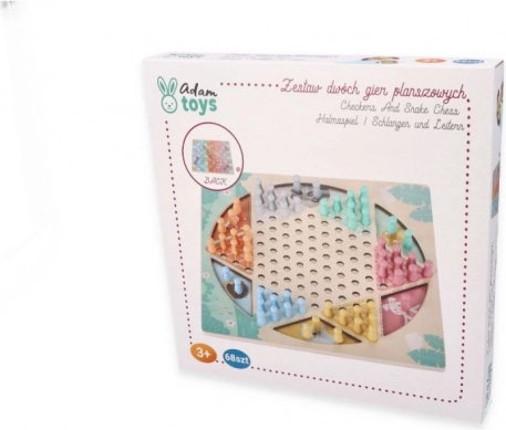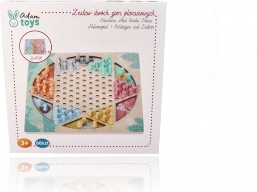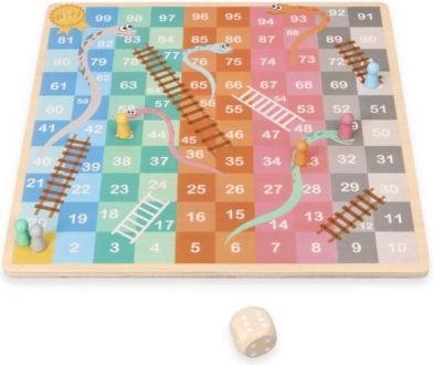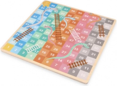 Šis medinis stalo žaidimas sujungia dvi klasikas vienoje. Vienoje pusėje rasite strateginę HALAMA (kinų damos/kinų damos variantą), kur tikslas – perkelti visus savo akmenėlius į priešingą pusę. Kitoje pusėje laukia greitas Gyvačių ir kopėčių žaidimas, kuriame, mesdami kauliuką, judate tikslo link, kylate kopėčiomis ir slystate gyvatėmis.