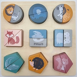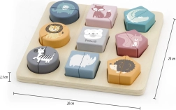 Medinė dėlionė su gyvūnais Viga – puiki priemonė ankstyvajam mokymuisi per žaidimą. Vaikai deda atskiras gyvūnų formas į atitinkamas angas, taip natūraliai lavindami akių–rankų koordinaciją, kantrybę ir susikaupimą. Kokybiškas medinis apdirbimas ir glotnūs kraštai užtikrina patogų ir saugų žaidimą.
