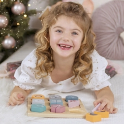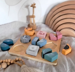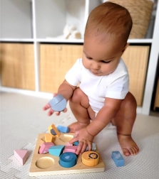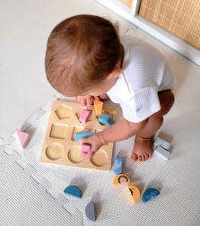 Formų dėliojimas į tinkamas angas treniruoja akių–rankų koordinaciją, kantrybę ir susikaupimą nuo ankstyvo amžiaus.