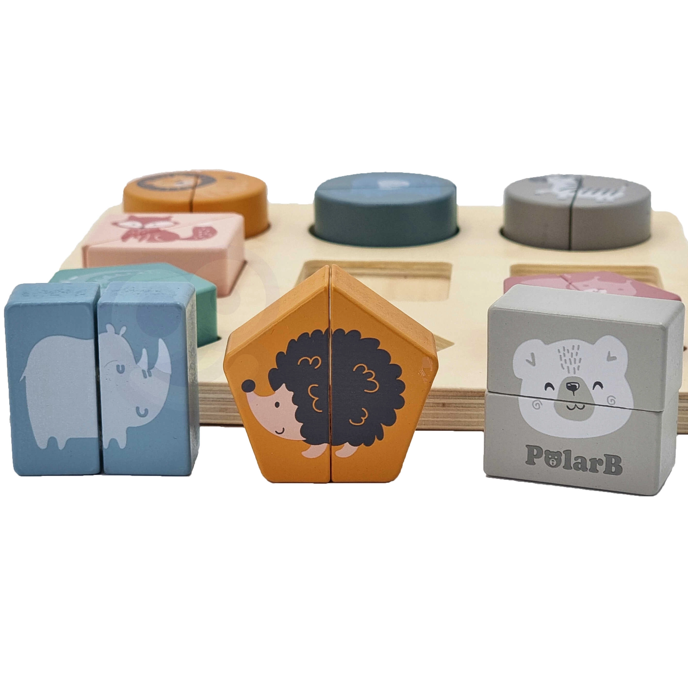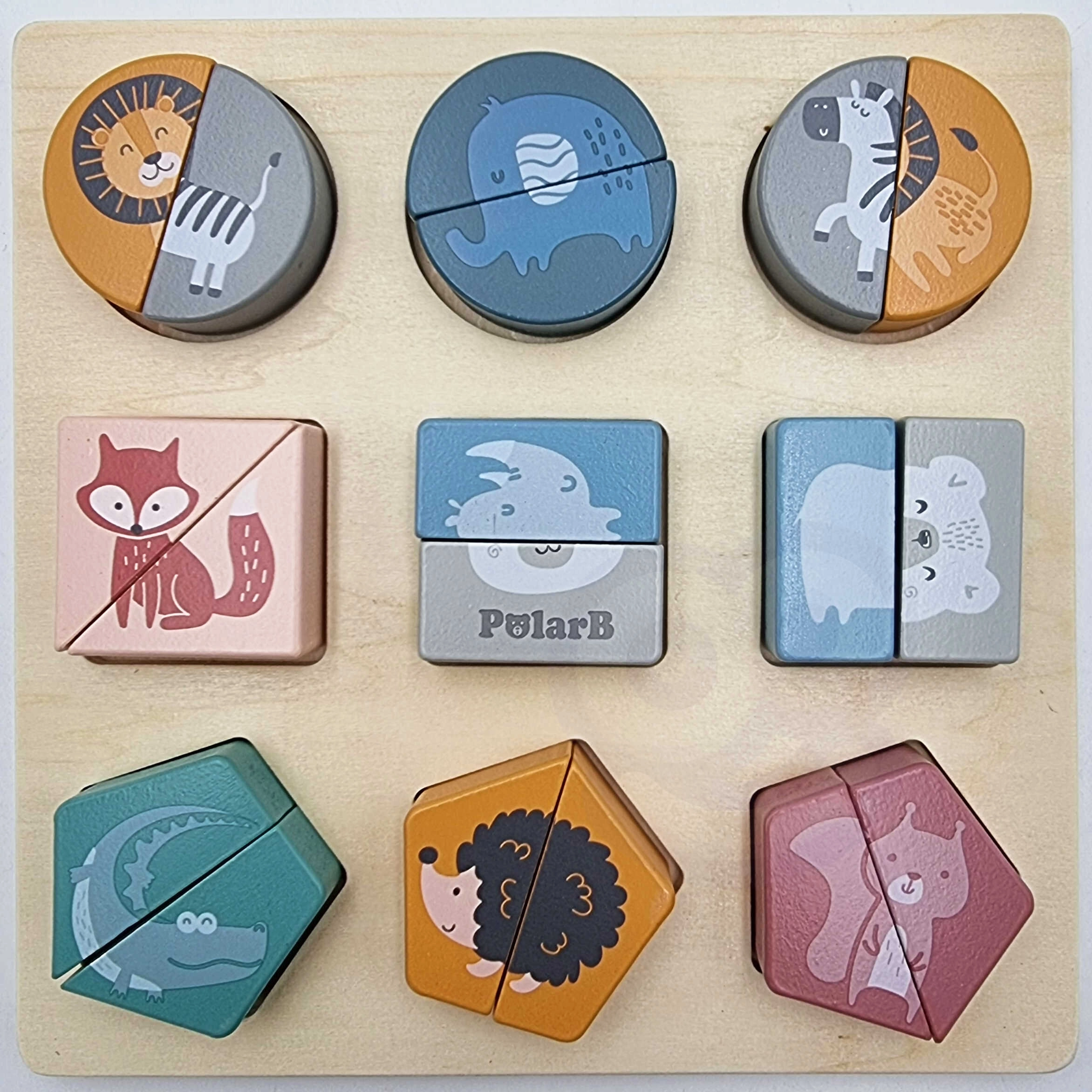 9 spalvotos detalės su gyvūnais padeda plėsti pažinimą ir turtina vaikų žodyną – smagus būdas mokytis formų ir gyvūnų pavadinimų.