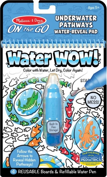 Interaktyvi vandens dažymo knygelė iš serijos On the Go suteikia vaikams valandų valandas kūrybiško žaidimo. Daugkartinio naudojimo vandens flomasteris atskleidžia puslapiuose jūros pasaulį, užduotis ir labirintus, kurie išdžiūvę vėl išnyksta – ir galima pradėti piešti iš naujo.