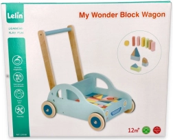 Stilingas medinis stumdukas su kaladėlėmis LELIN, primenantis automobiliuką, padeda žengti pirmuosius žingsnius, lavina motoriką ir suteikia daug kūrybiško žaidimo. Pagamintas iš lakuotos medienos, su stabilia konstrukcija ir guminiais ratukais tyliai ir užtikrintai eigai. Komplekte spalvotos kaladėlės, matmenys 46 × 32 × 40 cm, nuo 12 mėn., CE.