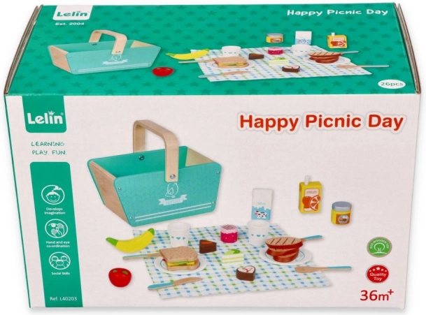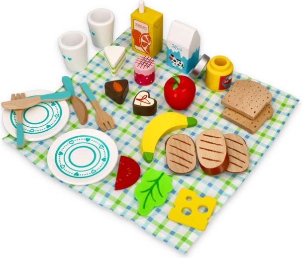 Dėl glotniai nušlifuotų detalių žaisti saugu ir malonu liesti. Vaikai lavins smulkiąją motoriką, akių–rankų koordinaciją ir bendravimą žaidžiant kartu. Po pikniko viską lengva sudėti atgal į krepšelį, todėl rinkinys patogus neštis ir laikyti tvarką.