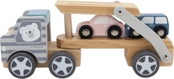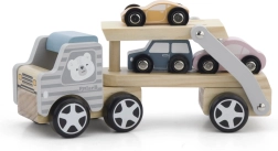 Šis medinis žaislas padeda lavinti vaizduotę, treniruoti smulkiąją motoriką ir mokytis paprastų užduočių pagal Montessori principus. Tralą galima derinti ir su kitomis mažomis mašinėlėmis, tad jis puikiai tinka augančiai kolekcijai.
