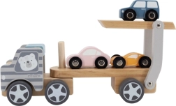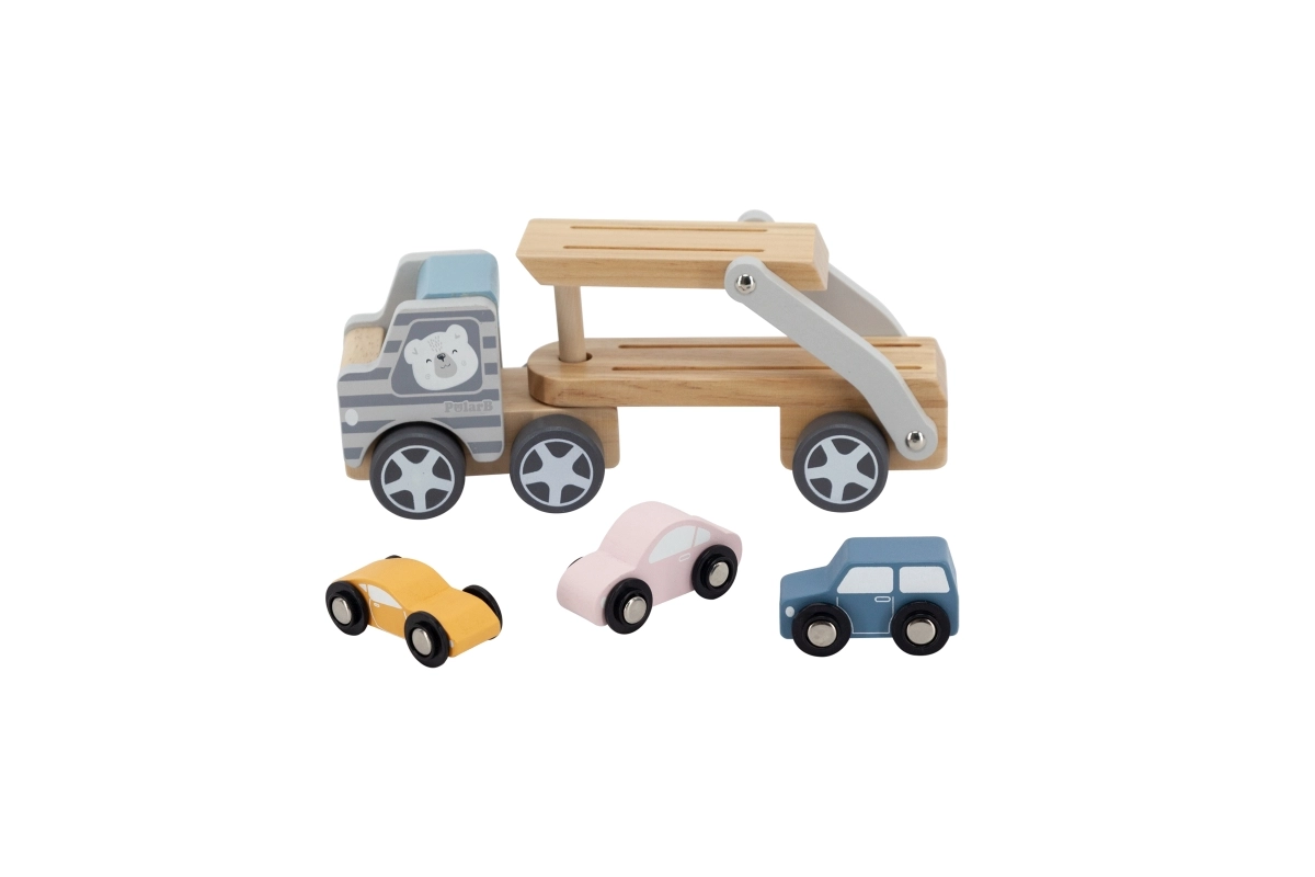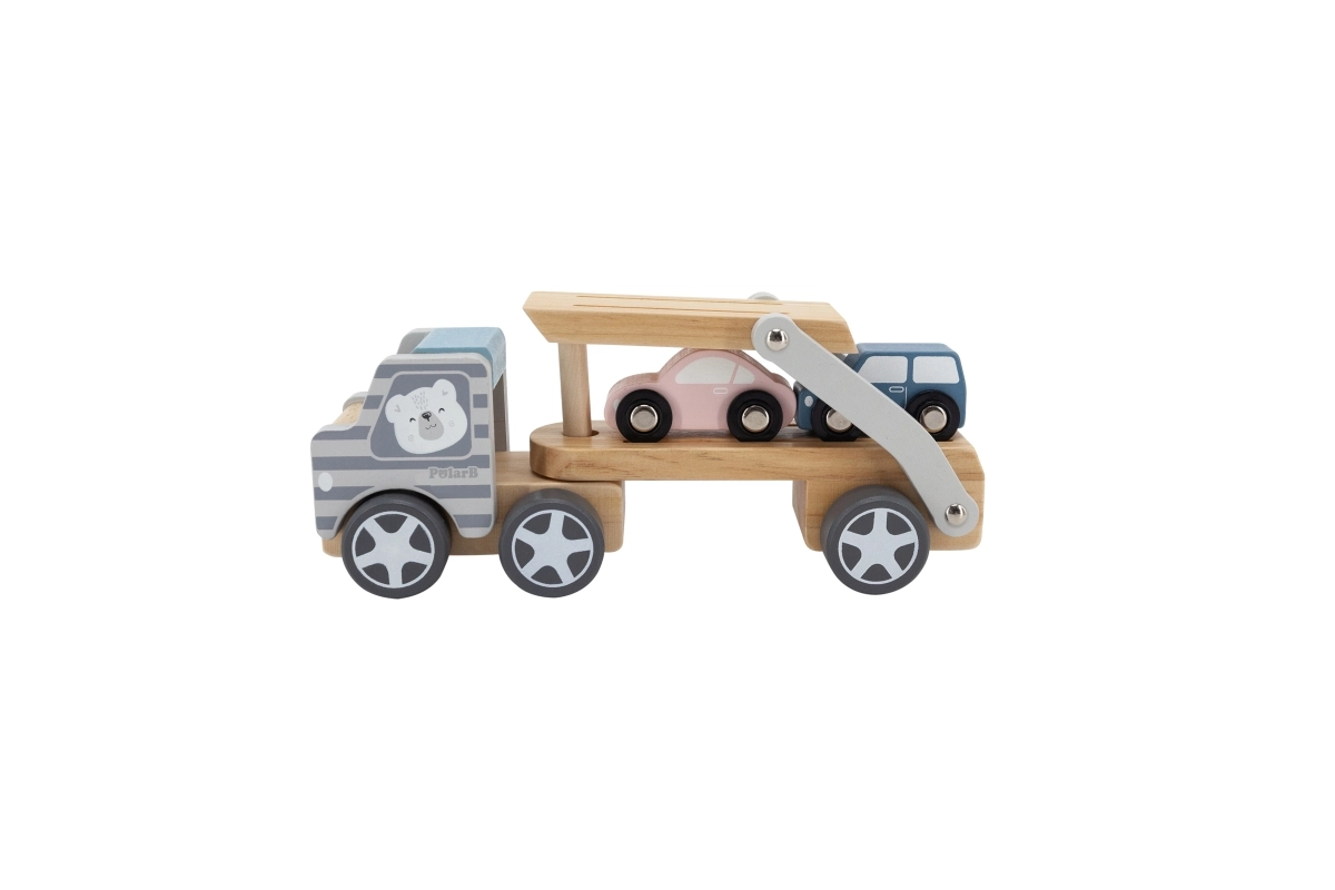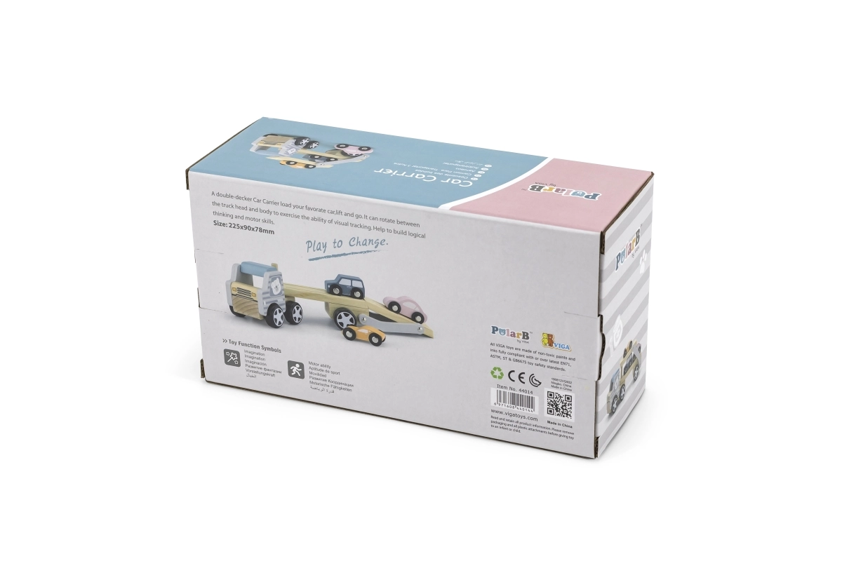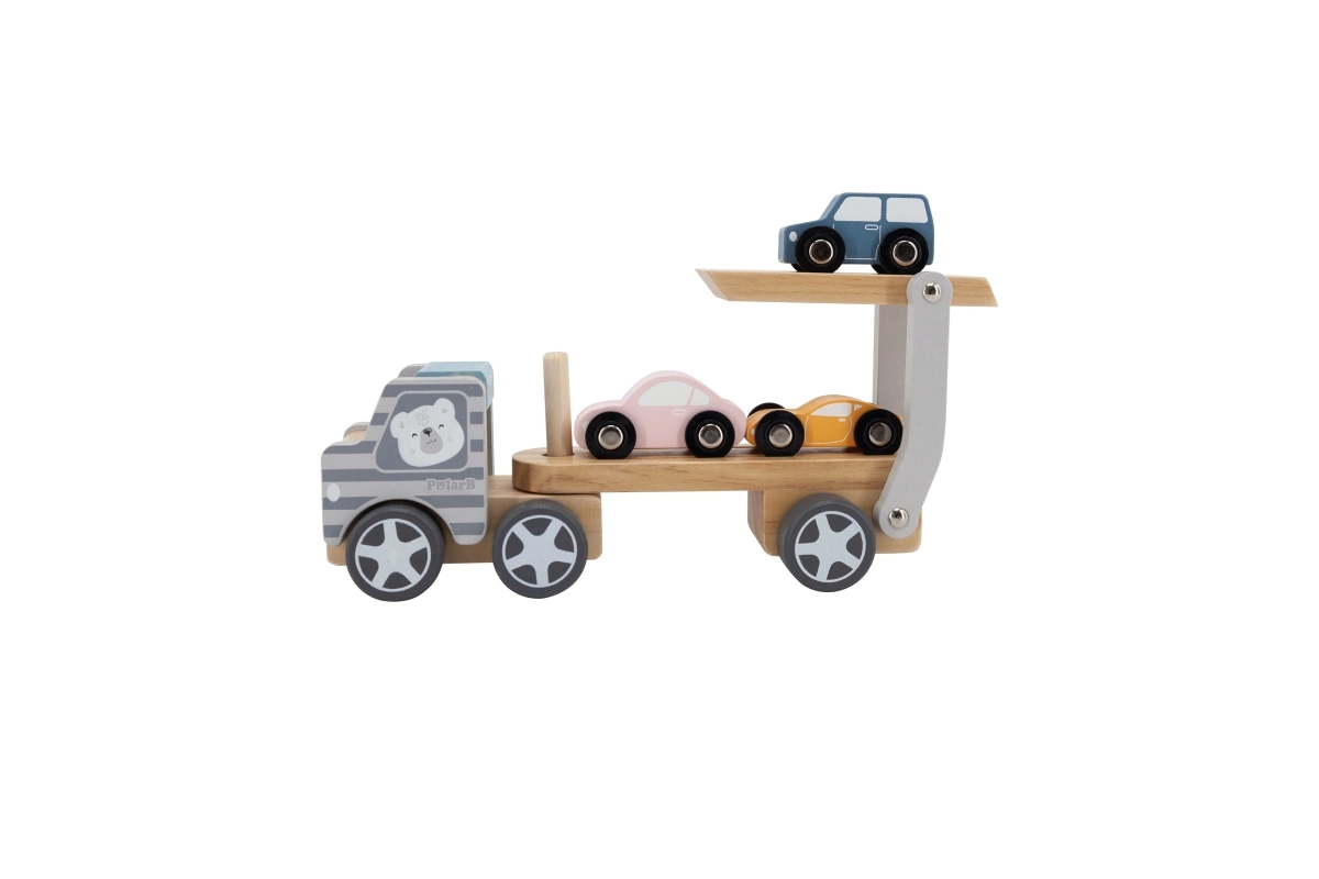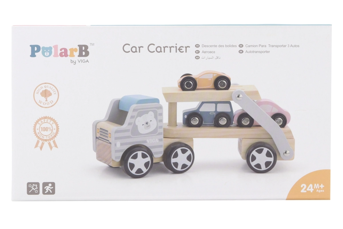 Medinis tralas VIGA PolarB vaikams suteikia ir pramogą, ir mokymąsi viename. Rinkinyje – sunkvežimis su priekaba ir trys spalvingos mašinėlės, kurias patogu pakrauti naudojant nuleidžiamą rampą. Patvari mediena ir kruopštus apdirbimas užtikrina ilgaamžiškumą, o netoksiški dažai, atitinkantys EN71 ir ASTM standartus, garantuoja saugumą kasdien žaidžiant.