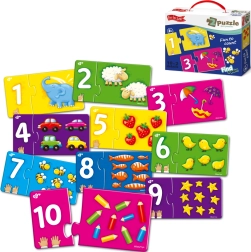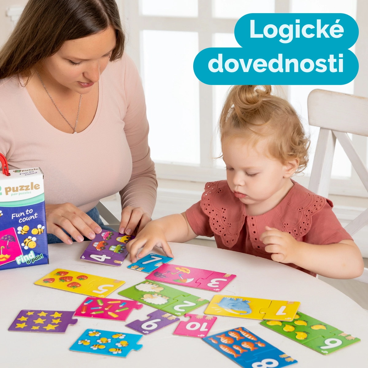 Su šiuo dėlionių rinkiniu vaikai ne tik susipažins su skaičiais, bet ir lavins kognityvinius gebėjimus bei gerins problemų sprendimo įgūdžius.