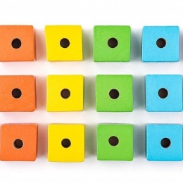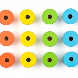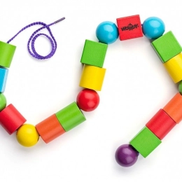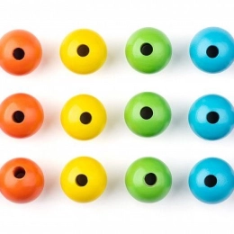 Dideli mediniai karoliukai su anga lengvam pervėrimui – puiki priemonė namams ir darželiui. Dėl ryškių spalvų ir malonios medžiagos vaikai noriai treniruojasi rūšiavimą, dėliojimą ir verimą, taip natūraliai lavindami įgūdžius, reikalingus rašymui ir susikaupimui.