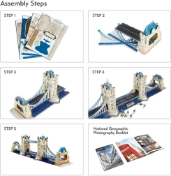 Atraskite Londoną statydami vieną žymiausių jo simbolių – Tower Bridge. 3D dėlionė iš National Geographic serijos, kurią kuria CubicFun, siūlo realistišką atlikimą, tikslias detales ir malonią statymo patirtį be klijų. Maždaug 3 mm putplasčio detalės su laminuotu spauda užtikrina tvirtumą ir gražią baigto modelio išvaizdą.