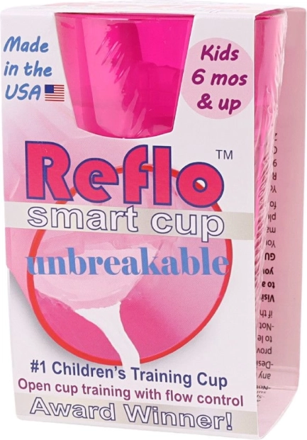 Rožinis Reflo mokomasis puodelis padeda vaikams nuo 6 mėn. saugiai išmokti gerti iš atviro puodelio. Dėl srauto reguliavimo sumažinama išsiliejimo rizika, nedūžtantis dizainas puikiai tinka namuose ir kelionėse, o kompaktiškas 170 ml tūris idealiai telpa į vaiko ranką. Pagaminta JAV, atitinka EN 14350.