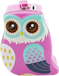 Ši skardinė taupyklė su mielos pelėdos motyvu yra puikus pirmųjų santaupų palydovas. Patvarus metalinis korpusas ir užraktas padeda vaikams saugiai laikyti monetas ir smulkius banknotus, o linksma išvaizda motyvuoja taupyti ir tuo pačiu tampa stilinga vaikų kambario dekoracija.