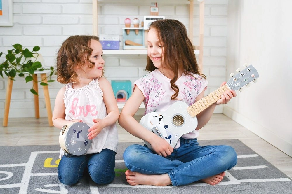 Ši žaisminga vaikiška gitara skandinaviško stiliaus dvasia skatina kūrybiškumą ir padeda lavinti muzikinę klausą bei smulkiąją motoriką. Dėl maždaug 22 cm menzūros vaikams patogu ją laikyti ir lengviau mokytis pagrindinių akordų bei ritmo.