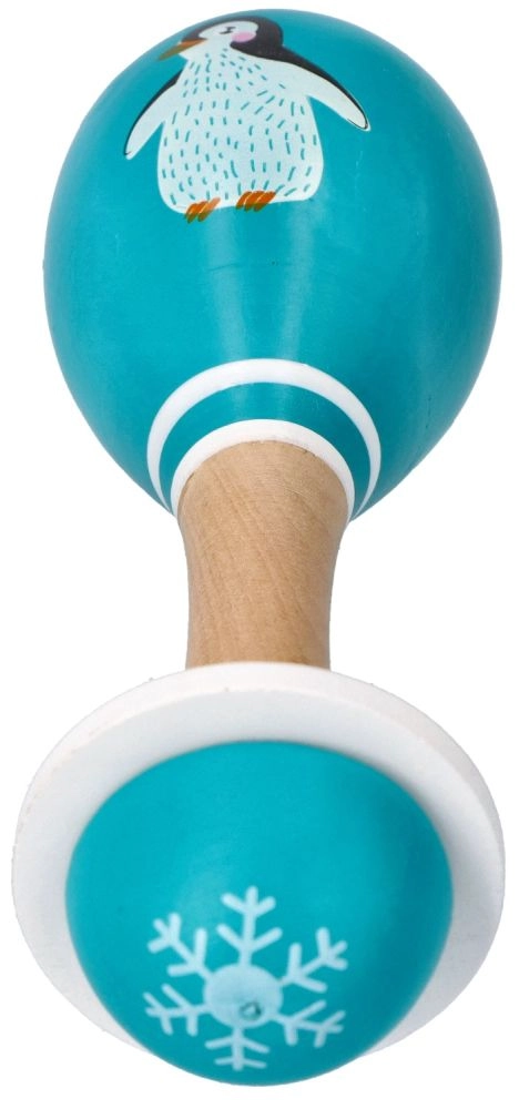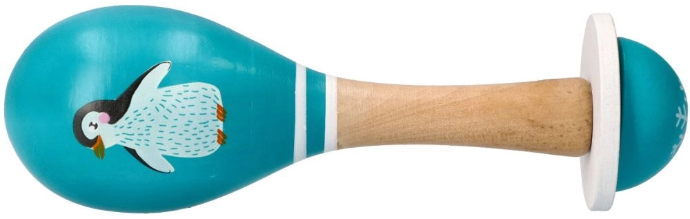 Šis spalvingas medinis marakas su pingvinu – puikus pirmasis muzikinis instrumentas vaikams. Dėl kompaktiškų matmenų jis puikiai telpa mažose rankytėse ir skleidžia malonų, neerzinantį garsą, kuris padeda lavinti ritmą ir akių–rankų koordinaciją.