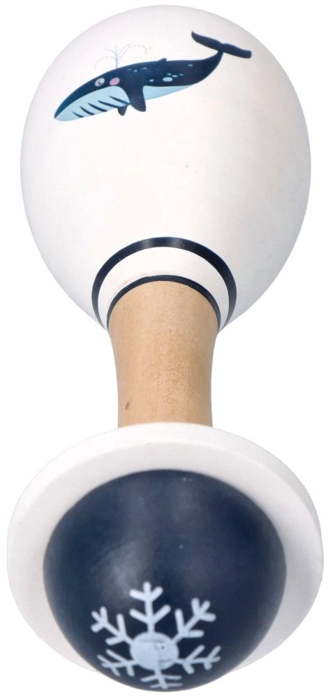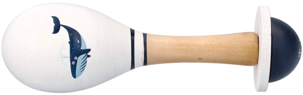 Žavus medinis marakas su banginio motyvu pradžiugins mažus muzikantus nuo 5 mėnesių. Dėl malonios medinės rankenėlės ir švelnaus garso jis skatina juslinę raidą, ritmo pojūtį ir motoriką. Vaikams saugios dažų medžiagos ir kruopštus apdirbimas kasdieniam žaidimui.