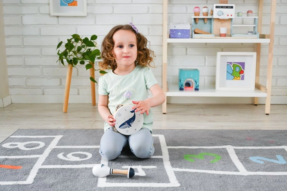 Šis stilingas vaikiškas marakas su banginio motyvu puikiai tinka pirmajam muzikiniam pažinimui. Lengvas korpusas patogiai telpa net mažose rankytėse, o švelnus barškantis tonas skatina klausos ir ritmo pojūčio raidą.