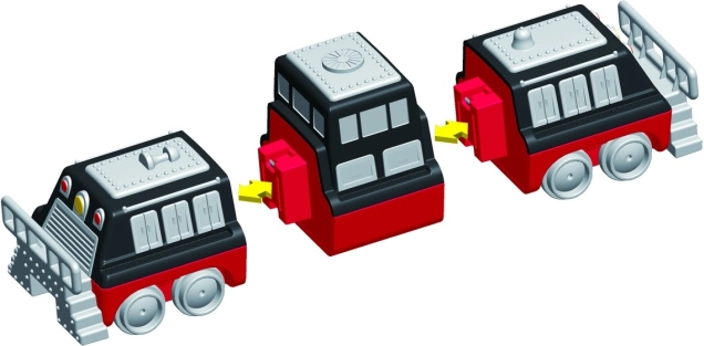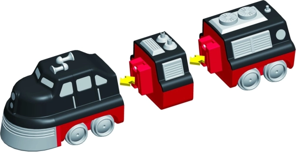 Pakuotėje yra 9 detalės, iš kurių sudėsite 3 paruoštus traukinius. Keičiant modulius sukursite dešimtis originalių variantų be fantazijos apribojimų.