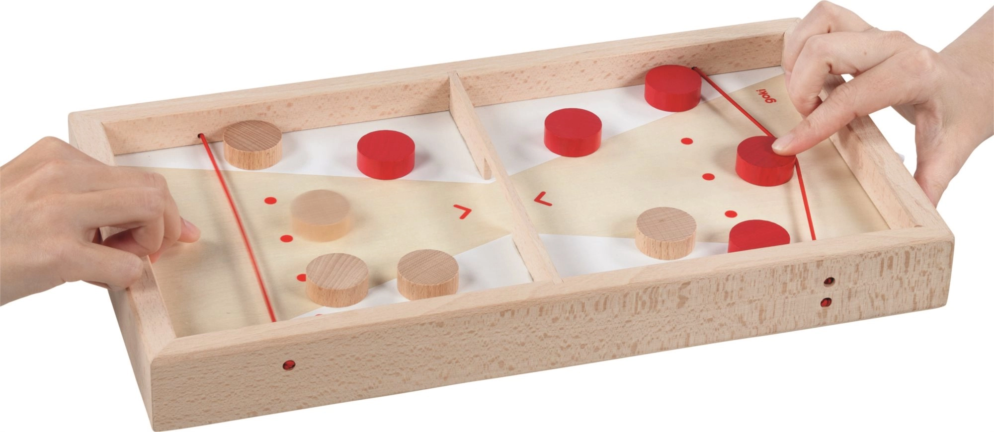 Šis dvipusis medinis žaidimas suteikia dvi patirtis vienoje dėžėje. Super Puck režime du žaidėjai stengiasi kiek įmanoma greičiau iššaudyti savo ritulius pro angą į varžovo pusę, pasitelkdami elastingas gumeles. Apverskite lentą ir gausite ramesnį, bet įtemptą tikslumo ir taškų rinkimo žaidimą pataikant į taikinius.