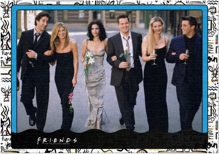 Mėgaukitės ilgomis pramogų valandomis su licencijuota dėlione FRIENDS – Draugai. Dėl tiksliai išpjautų detalių ir sodrių spalvų dėliojimas yra sklandus, o rezultatas – maksimaliai įspūdingas. Užbaigta banketo scena pradžiugins kiekvieną serialo mylėtoją ir puikiai tiks įrėminti.
