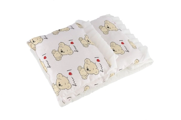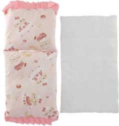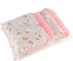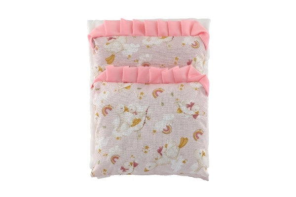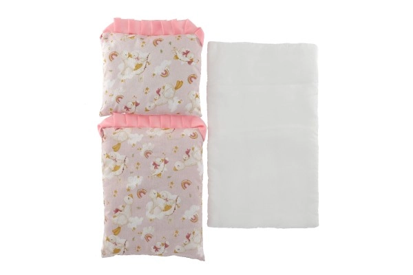 Minkštas antklodėlės ir pagalvėlės užpildas suteikia lėlėms jaukią aplinką, o vaikams – malonesnį žaidimą.