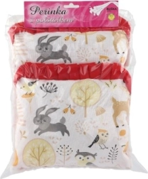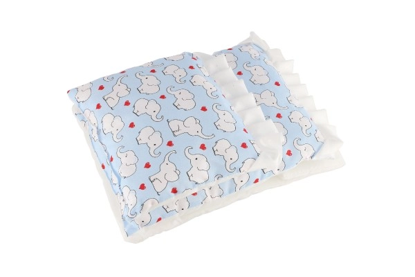 Pagalvėlė 23 × 28 cm, paklotėlis 50 × 30 cm, antklodėlė 35 × 28 cm – puikiai tinka lėlių vežimėliams ir lovelėms.