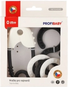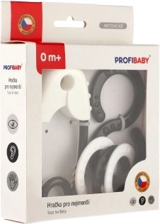 Juodai baltų barškučių rinkinys, idealus mažylių regos ir klausos stimuliacijai. Tobulas dydis vaiko rankytėms.