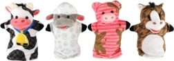 Rinkinyje yra keturios ūkio lėlės: karvė, avis, paršiukas ir arkliukas – puikiai tinka kurti pasakų istorijas.