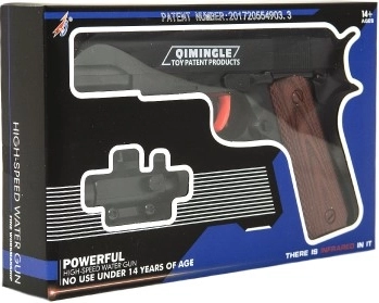 Šis realistiškai atrodantis plastikinis pistoletas skirtas minkštiems kamuoliukams, todėl galėsite mėgautis įtraukiančiu veiksmu, akcentuojant saugumą. Dėl kompaktiško 20 cm ilgio patogiai guli rankoje ir lengvai valdomas. Pakuojamas į dovaninę dėžutę, kurios matmenys 24 × 15 × 4 cm.
