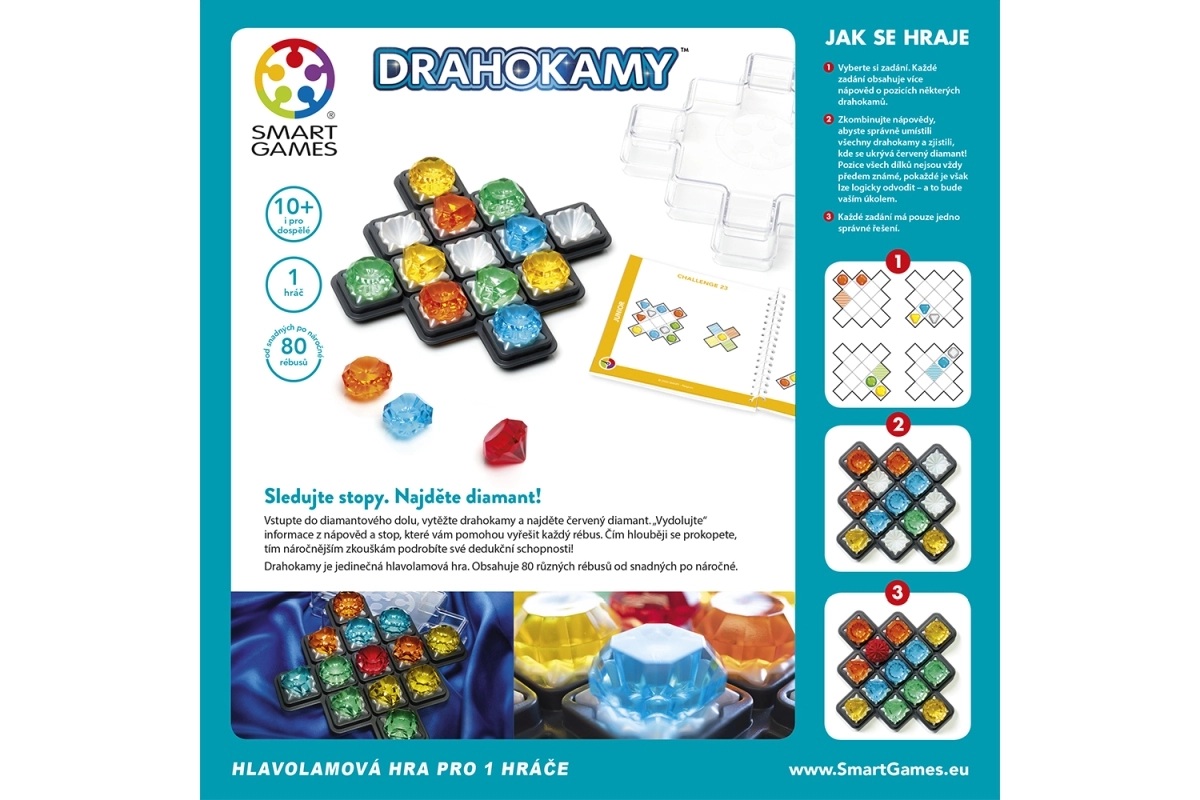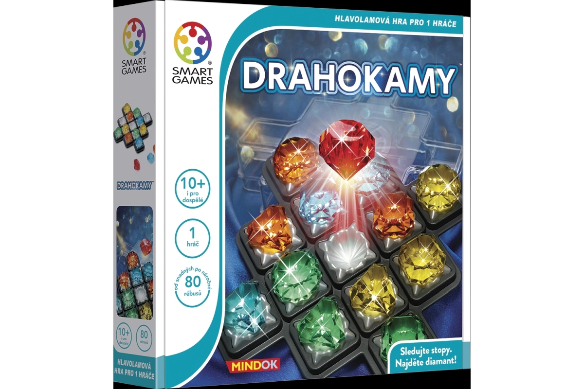 Atraskite loginio mąstymo magiją su Brangakmeniais iš SmartGames. Leiskitės į „deimantų kasyklą“, derinkite užuominas ir pasitelkę dedukciją suraskite raudoną deimantą. Jūsų laukia 80 galvosūkių nuo lengvų iki sudėtingų, kurie lavina IQ, loginį mąstymą, erdvinę vaizduotę, koncentraciją ir planavimą.