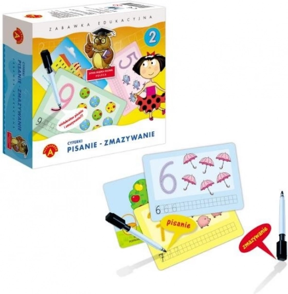 Žaidimas „Pexi rašymas ir trynimas – skaičiai“ pateikia 14 dvipusių lentelių su 28 mokomaisiais motyvais, kurie žingsnis po žingsnio veda vaikus prie užtikrinto skaitmenų 1–14 rašymo. Punktyrinės linijos palengvina formų treniruotę, o teminės iliustracijos padeda suprasti kiekius. Dėl nuvalomo paviršiaus vaikai gali lengvai taisyti klaidas ir atlikti užduotis vėl ir vėl.