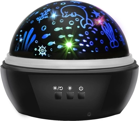 Sukurkite vaikams jaukią, magišką atmosferą su stilinga naktine lempa-projektoriumi. Ji siūlo įspūdingus šviesos efektus, pasirenkamus žvaigždėto dangaus arba povandeninio pasaulio motyvus, besisukančią kupolą ir 4 šviesos spalvas ramiam užmigimui ir poilsiui.