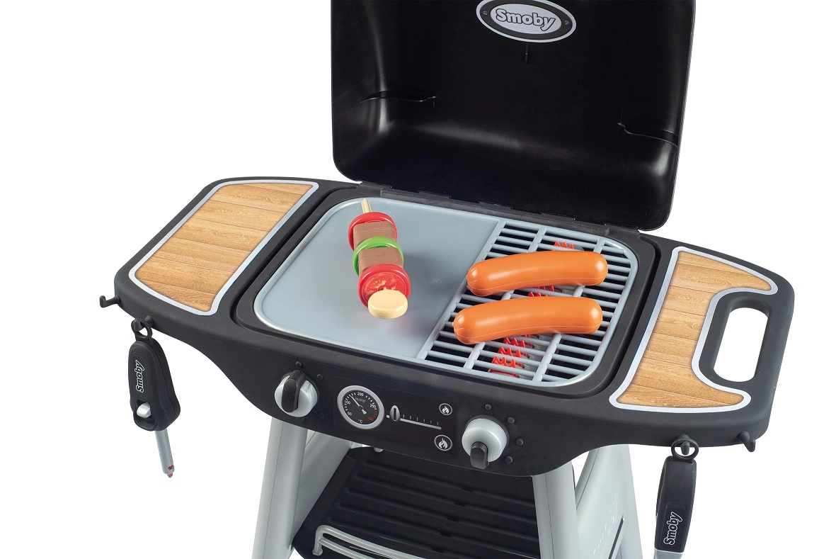 Pristatome vaikų žaidimų grilį iš žinomo prekės ženklo Smoby, kuris suteikia džiaugsmo ir pramogų visiems mažiesiems gaminimo mėgėjams. Šis grilis aprūpintas 18 autentiškų priedų, tarp kurių yra mėsainis, iešmelis, grilio žnyplės, garsinis uždegiklis ir druskos bei pipirų malūnėlis. Dėl šių priedų vaikai gali patirti tikrą kepimo ant grotelių pojūtį.