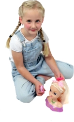 Šukavimo galva blondinė su priedais – puikus pasirinkimas mažosioms stilistėms, kurios mėgsta šukuosenas ir kūrybišką žaidimą. Stori, kokybiški plaukai lengvai šukuojami ir formuojami, todėl nesunkiai padarysite elegantiškas uodegas, prancūziškai supintas kasas ir gausybę smulkių kasyčių. Rinkinyje yra praktiški priedai, padėsiantys kiekvienai permainai.