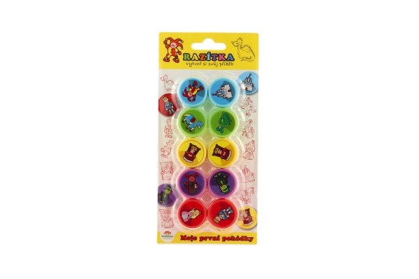 Vaikiški antspaudai „Mano pirmosios pasakos“ skirti kiekvienam mažam vaikui. Jie leidžia spausti atskirus paveikslėlius ir kurti istorijas, kas tikrai suteikia džiaugsmo ir kūrybiško užsiėmimo. Kiekvienoje pakuotėje yra 10 vienetų antspaudų.