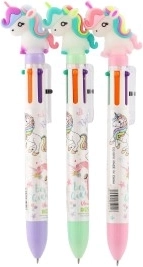 Smagus daugiaspalvis rašiklis su vienaragio motyvu suteiks rašymui žavesio ir kūrybiškumo. Jame yra 6 skirtingos rašalo spalvos, kurias galima greitai keisti paspaudimu. Idealiai tinka į mokyklą ir namams, su patogiu laikikliu ir žaismingu dizainu vaikams bei vienaragių gerbėjams.