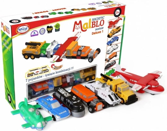 MalBlo MAGNETIC Deluxe – išmanus konstruktorius mažiesiems inžinieriams. 21 detalė pakuotėje (7 paruoštos transporto priemonės) leidžia surinkti daugiau nei 1000 skirtingų kombinacijų – nuo automobilių ir vilkikų iki lėktuvų ar ateities mašinų. Dalys turi idealią magnetinio ir mechaninio sujungimo jėgą, todėl lengvai valdomos ir kartu tvirtai laikosi.