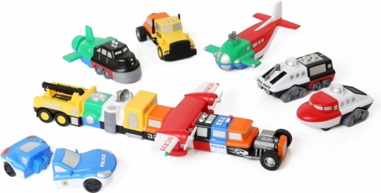 Pakuotėje rasite 21 detalę ir 7 paruoštas transporto priemones. Maišykite, derinkite ir kurkite originalias mašinas pagal savo fantaziją.